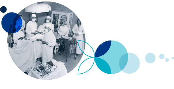 Photo Sœur Sainte-Marie-Paul (Antoinette) Grenier, infirmière, à la salle d’opération no 1 durant une thyroïdectomie, 1949 – L059-DI/Ba01,09.38, Fonds d’archives de la Maison généralice des Sœurs de la Charité de Québec.