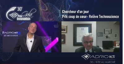 Prix coup de cœur – Relève Technoscience au Gala des Prix Innovation de l’ADRIQ pour Chercheur d’un jour