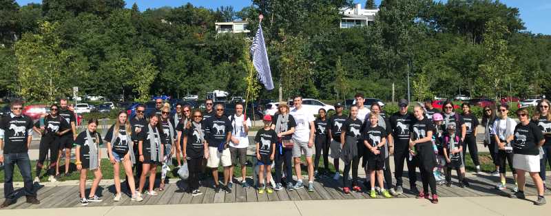 Marche 2020 de la branche québécoise de la Société canadienne des tumeurs neuroendocrines. À l'extrémité gauche, le Dr Beauregard. Au milieu de la première rangée, le Pr Girish Shah et Mme Rashmi Shah. Entre le Dr Beauregard et le Pr Shah, M. Marco Labrie, patient, et sa famille. À l'extrémité droite, Marine Merlin, étudiante au doctorat codirigée par le Dr Beauregard et le Pr Shah.