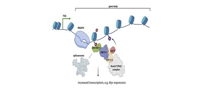 Les complexes protéiques sont constitués de diverses protéines qui se lient les unes aux autres et ont des fonctions spécifiques dans la cellule. Dans le cas de NuA4/TIP60, sa fonction consiste en l’activation de certains gènes. Or, NuA4/TIP60, un régulateur positif, se trouve parfois fusionné à un régulateur négatif à la suite de modifications génétiques, un phénomène nommé « translocation chromosomique ». Lorsque cela se produit, les chercheurs ont observé que NuA4/TIP60 cible alors des gènes qui ne sont normalement pas censés être exprimés, ce qui entraîne la formation de cancers tels que des leucémies et des sarcomes utérins. Ces résultats ouvrent la porte à des essais cliniques utilisant des inhibiteurs spécifiques de NuA4/TIP60 pour le traitement personnalisé des cancers présentant ces translocations chromosomiques. Les équipes de Yannick Doyon, Arnaud Droit, Jean-Philippe Lambert, Samer Hussein et Amélie Fradet-Turcotte ont notamment collaboré à la réalisation de ces recherches. Pour consulter les publications : Recurrent chromosomal translocations in sarcomas create a megacomplex that mislocalizes NuA4/TIP60 to Polycomb target loci Oncogenic ZMYND11-MBTD1 fusion protein anchors the NuA4/TIP60 histone acetyltransferase complex to the coding region of active genes