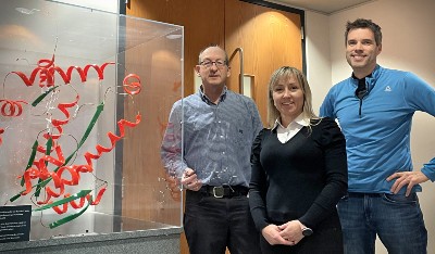 De gauche à droite : Donald Poirier, professeur à la Faculté de médecine de l’Université Laval et chercheur en chimie analytique et médicinale au CRCHU; Jenny Roy, professionnelle de recherche et experte en évaluation biologique de petites molécules; René Maltais, professionnel de recherche et expert en chimie organique de synthèse et chimie médicinale.
