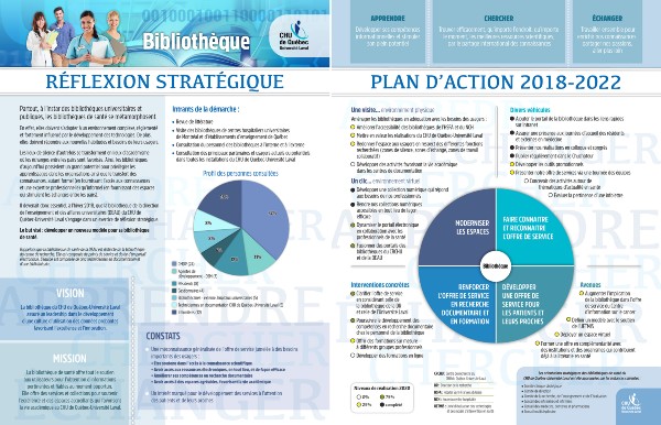 Comment les bibliothèques doivent-elles se transformer et évoluer pour répondre aux besoins des utilisateurs en 2020? Une vaste démarche entreprise à la Direction de l’enseignement et des affaires universitaires a permis de redéfinir notre bibliothèque, tant en ce qui a trait aux services qu’elle offre qu’à ses espaces physiques et virtuels.