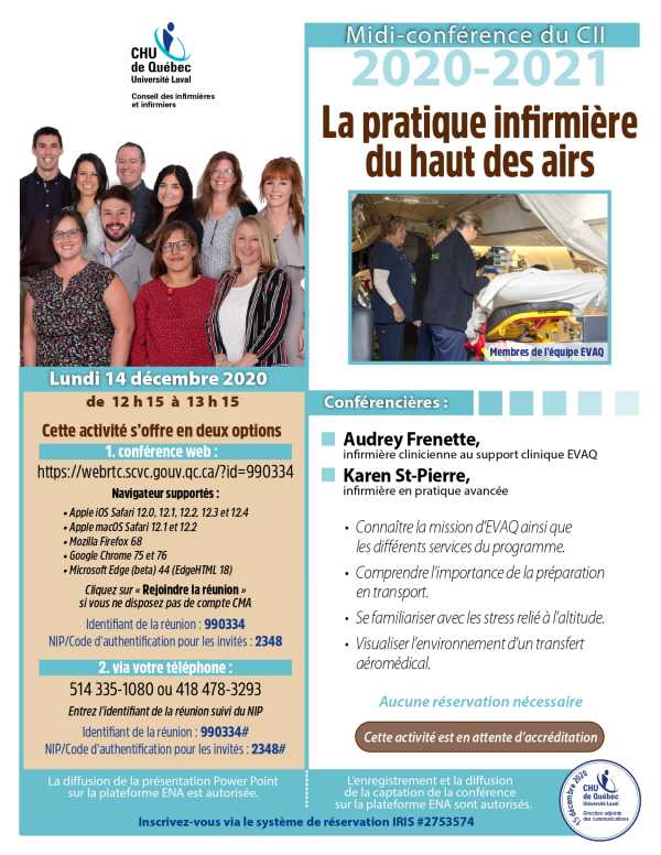 Le 11 novembre dernier, le conseil des infirmières et infirmiers du CHU de Québec-Université Laval a tenu son premier Gala reconnaissance virtuel au cours duquel le travail exceptionnel d’infirmières, d’infirmières auxiliaires et de préposés aux bénéficiaires a été souligné. Nous sommes très fiers d’avoir réuni un peu plus de 80 participants à cette soirée.