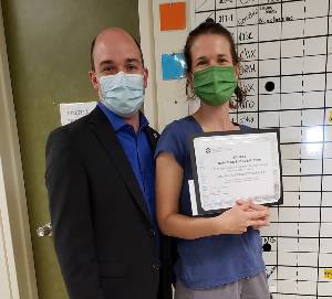 Prix innovation infirmière régionale – mention contribution aux développements d’interventions préventive en santé : Laurence Fortier, infirmière en pratique avancée en soins palliatifs, et son équipe (Clémence Dallaire) pour le projet Outils de dépistage du risque de violence – soins aigus.