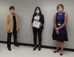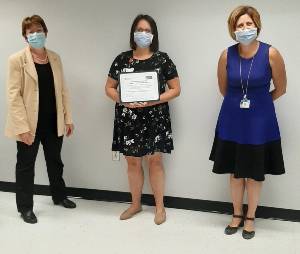 Martine Dallaire, présidente du comité de promotion de l’excellence de l’ORIIQ, Laurence Fortier et Isabelle Vézina, directrice adjointe à la Direction des soins infirmiers.