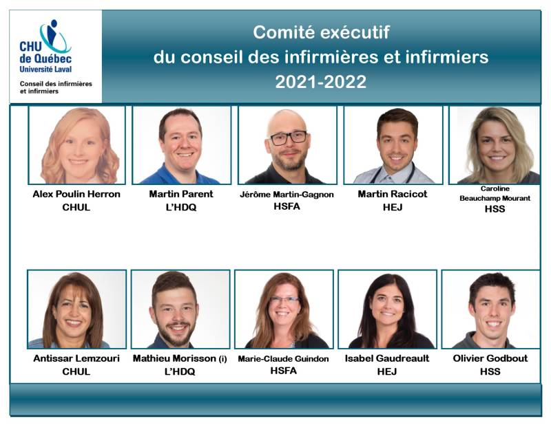 Voici l’exécutif du Conseil des infirmières et infirmiers du CHU de Québec pour l’année 2021-2022.