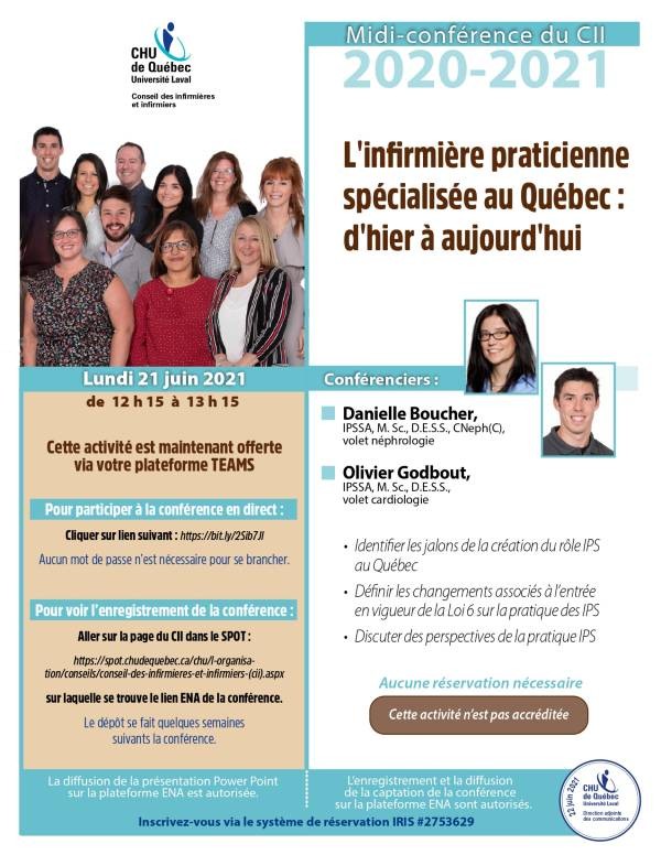 Le document PowerPoint de la conférence offerte par Madame Myriam Gauthier, inf. PhD. (c), professeur assistante à la Faculté des sciences infirmières de l’Université Laval, ayant pour titre Création d’environnements de soins culturellement sécurisants : une responsabilité et un engagement partagés est maintenant disponible sur le SPOT : consultez la section « Assemblée générale annuelle » de la page du CII.