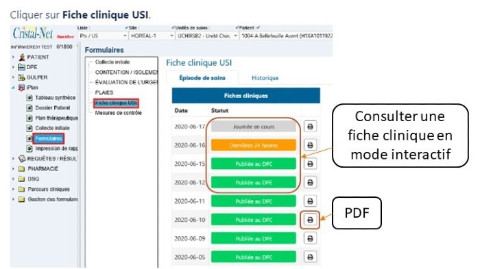 Informations contenues dans la fiche clinique informatisée :