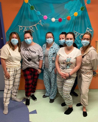 Des fous rires, pleins de jeux, et ce, dans le confort de son pyjama! Voilà les ingrédients d’une journée inoubliable pour Jeanne Lajeunesse, patiente du Centre mère-enfant Soleil, qui a eu l’idée de cette activité. Dans les départements de chirurgie et de médecine de jour, cinéma, photobooth, beignes, gâteaux et chocolat chaud attendaient nos petits patients en pyjama pour leur offrir un doux moment cocooning.