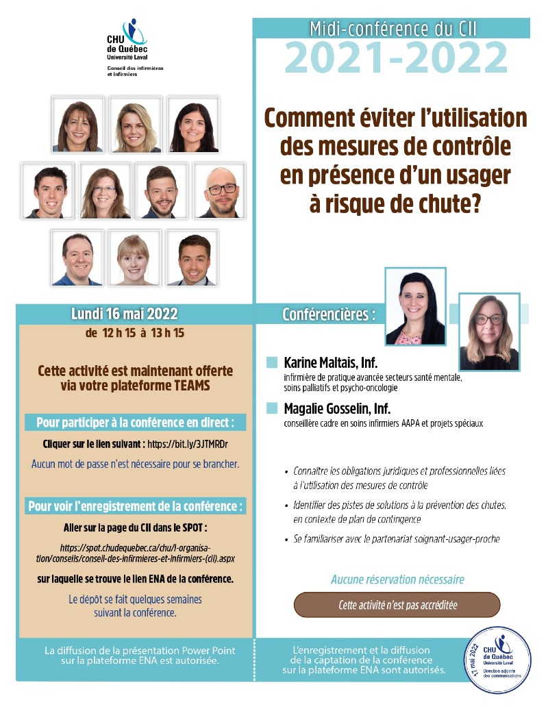 La Direction des soins infirmiers est actuellement en recrutement pour combler les postes d’IPS des secteurs priorisés pour la spécialité soins aux adultes. Le CHU attend six candidates IPS qui termineront leur programme à l’Université Laval en septembre 2022.