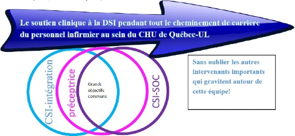 Le CHU de Québec-Université Laval (CHU) a à cœur de soutenir les professionnels en soins infirmiers, et ce, tout au long de leur carrière. C’est pourquoi la grande équipe de l’intégration et du soutien clinique de la Direction des soins infirmiers (DSI) est présente dans chacun des cinq hôpitaux du CHU, 24 heures sur 24, pour veiller à l’intégration, au développement et à la qualité des soins offerts par les infirmières, les infirmières auxiliaires, les préposés aux bénéficiaires (PAB), les assistants techniques en soins de santé (ATSS), les candidates à l’exercice de profession infirmière (CEPI), les candidates à l’exercice de la profession infirmière auxiliaire (CEPIA), les externes en soins infirmiers, les infirmières diplômées hors Canada (DHC), les stagiaires infirmières en arrangement de reconnaissance mutuelle (ARM), etc.