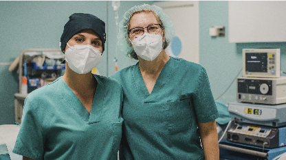 Delphyne après l'opération.                                                    Les Drs Crevier et Lessard Bonaventure pendant l'opération.