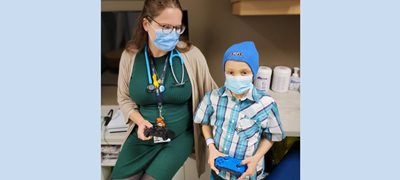 Photo : La Dre Pauline Tibout et l’un de ses patients à l’Unité d’hémato-oncologie Charles-Bruneau au Centre mère-enfant Soleil.