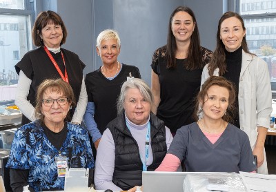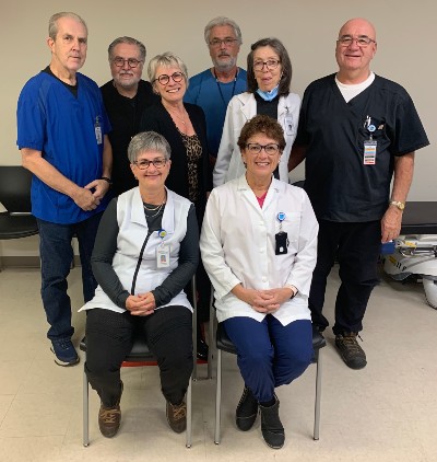 De gauche à droite, debout : Pauline Potvin, Guylaine Letiec, Cynthia Grenier (PCI CHU) et Alicia St-Hilaire (PCI CHU). Assises : Jo-Anne Mathieu, Hélène Giroux et Élaine Fortin.