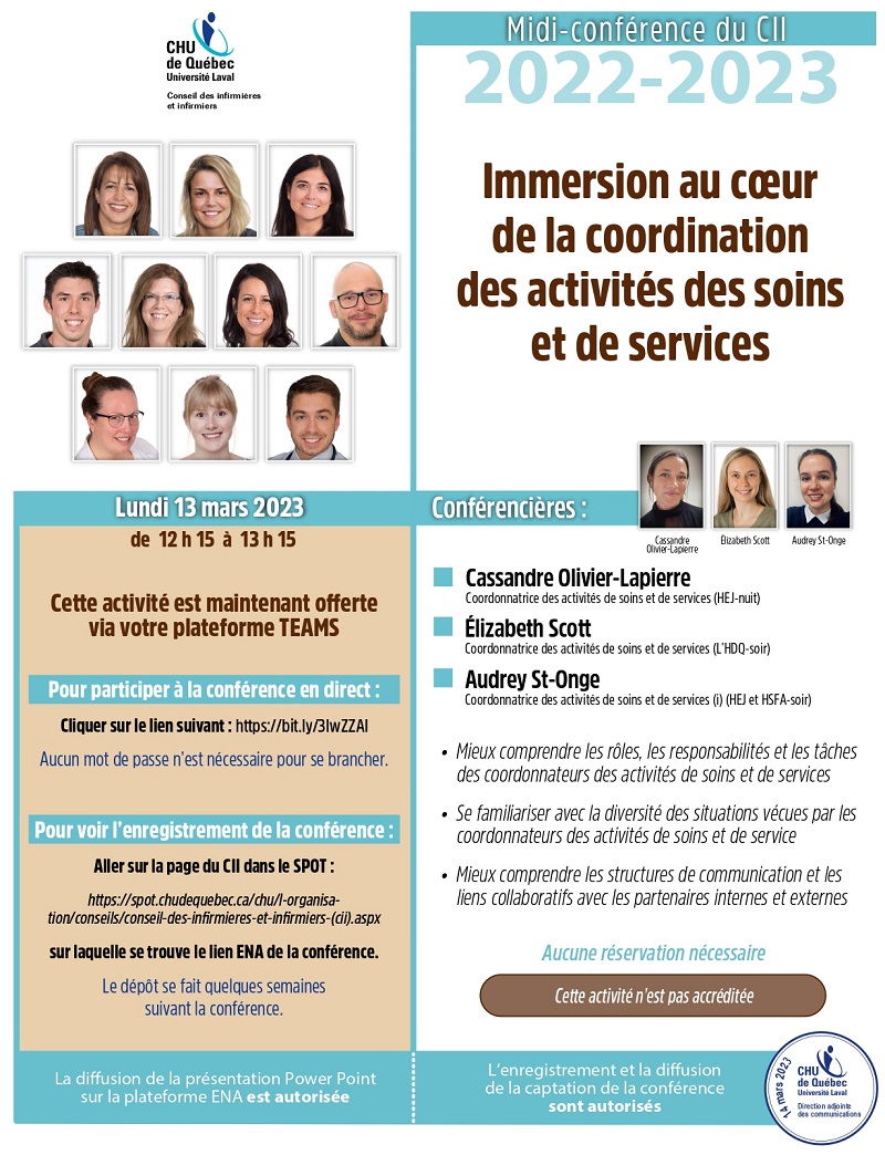 Le Conseil des infirmières et infirmiers (CII) et le Comité des infirmières et infirmiers auxiliaires (CIIA) du CHU de Québec-Université Laval sont fiers de vous présenter les nouveaux membres élus lors de l’élection de février 2023.