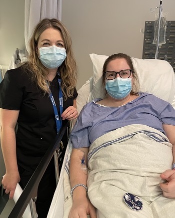 Lorsqu’elle a reçu son diagnostic de dysmotilité de l’intestin, Mélissa a été hospitalisée pendant deux longs mois à L’Hôtel-Dieu de Québec. Au fil des traitements, des hospitalisations et des interventions, elle a eu l’occasion de connaître les équipes de l’urgence, de chirurgie et de médecine, et même, lorsque ça déborde et qu’il faut trouver des lits dans d’autres unités, celles d’orthopédie, de greffe rénale et de dialyse!
