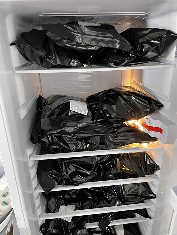 Mélissa est nourrie par des perfusions intraveineuses de nutriments. Son frigo est rempli de poches d’hyperalimentation contenant multivitamines et médicaments.