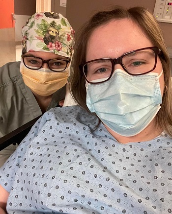 À gauche : Julie, nutritionniste au CHUL, avec Mélissa. À droite : Cynthia, en angiographie au CHUL, avec Mélissa.