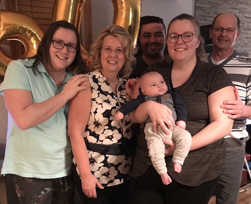 « Dans ma famille, on est tissés serrés. Ma famille, c’est mon pilier. » De gauche à droite, à l’avant : Mélissa, sa maman Nathalie, son filleul Ismael et sa sœur Noémie. Derrière, son beau-frère Simon et son papa Claude.