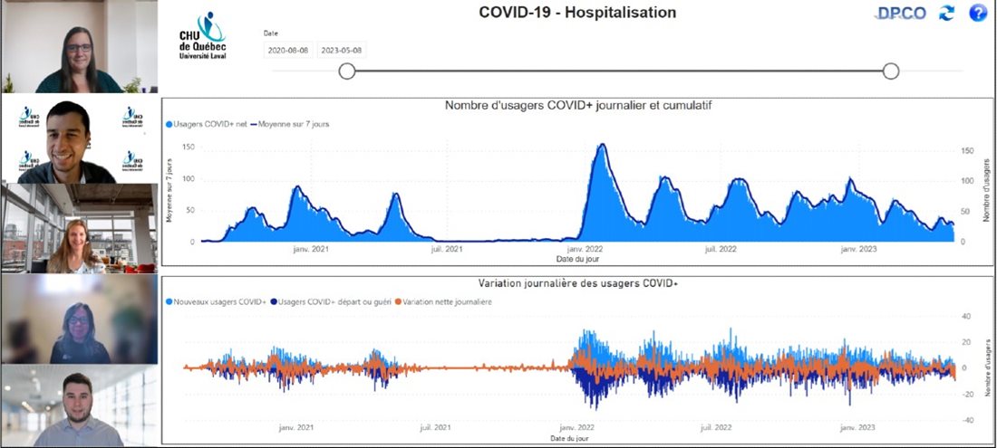 L’information colligée grâce à cette architecture de données COVID offrait un portrait clair de la situation à nos gestionnaires dès les petites heures du matin et se mettait à jour jusqu’au point de presse quotidien du premier ministre Legault. Elle permettait certainement la prise de décision à l’interne, mais elle gardait surtout informé l’ensemble des Québécois avec des données objectives sur l’évolution de la pandémie. Les partenaires locaux du CHU, le CIUSSS de la Capitale-Nationale et l’Institut universitaire de cardiologie et de pneumologie de Québec, ainsi que nationaux, les autorités nationales de la Santé publique et le ministère de la Santé et des Services sociaux, ont pu bénéficier de ces informations afin de pouvoir également mieux anticiper les besoins.