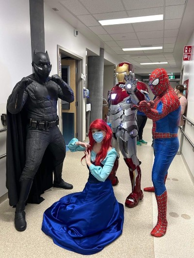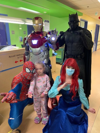 En effet, le 18 janvier dernier, Batman, Iron Man, Spider-Man et Ariel sont venus au Centre mère-enfant Soleil pour s’inspirer du courage de nos petits patients en vue de leur prochaine grande aventure. C’est avec beaucoup d’excitation et de sourires qu’ils ont été accueillis dans l’ensemble des unités! Un énorme merci à Le Chevalier Noir de Québec et à La Ligue des Héros pour votre générosité. Votre visite a fait plusieurs heureux, tant chez les enfants, les parents que chez les intervenants!
