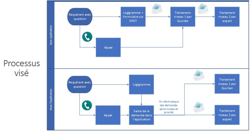 De plus, la réorientation vers une autre personne par multiple transferts de courriels ou d’appels avant que la demande ne soit traitée (cela pouvait prendre plusieurs personnes avant de trouver la bonne!) faisait en sorte de rendre le suivi impersonnel et donnait à notre clientèle une impression de désorganisation.