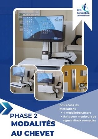 Des ordinateurs ont fait leur apparition au chevet des usagers cette année. En fait, 100 % des chambres à l’Hôpital Saint-François d’Assise, 65 % à l’Hôpital de l’Enfant-Jésus, 42 % à l’Hôpital du Saint-Sacrement, 18 % au CHUL et 0 % à L’Hôtel-Dieu de Québec sont maintenant équipés d’un ordinateur. Il est toutefois prévu d’avoir complété leur installation partout au CHU d’ici septembre 2024.