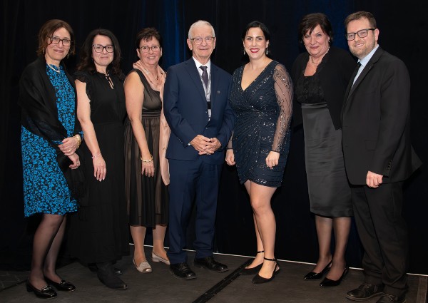 De gauche à droite : Mme Amina Belcaid, professionnelle scientifique de l’Unité de traumatologie à la Direction des services de santé et de l’évaluation des technologies à l’INESSS, Mme Rachelle Huard, adjointe au directeur des soins critiques - volet continuums de soins surspécialisés au CHU, Mme Sylvie Côté, retraitée et membre honorable du colloque de traumatologie Traumas Défis, M. Pierre Mathieu, retraité et membre du comité organisateur, Mme Sarah Déry, adjointe au directeur des soins critiques – administration, transformation et intégration des programmes suprarégionaux – EVAQ, Mme Christine Rizzo, retraitée et membre honorable du colloque de traumatologie Traumas Défis, M. Stéphane Tremblay, directeur des soins critiques du CHU.