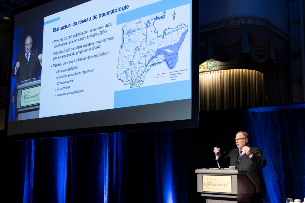 Le colloque a également été l’hôte d’une importante conférence de presse annonçant la désignation du CHU de Québec-Université Laval comme centre tertiaire en traumatologie pédiatrique pour tout l’est du Québec, en complémentarité des soins et des services offerts pour la clientèle de l’Hôpital de l’Enfant-Jésus. Cette nouvelle désignation au Centre mère-enfant Soleil (CMES) au CHUL témoigne des vastes travaux menés par les équipes pour acquérir un niveau d’expertise conforme aux plus hauts standards et permet aujourd’hui au CHU d’accueillir et de soigner de jeunes patients victimes de traumatismes nécessitant des soins spécialisés et surspécialisés. Lire le communiqué
