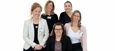 Photo principale : L’équipe responsable du projet. De gauche à droite : Dominique Guérard, chef d’unité 1er-4e Sud-Est CHUL, Marie-Claude Guindon, chef d’unité d’hémodialyse L’Hôtel-Dieu de Québec, Véronique Richer, conseillère-cadre à la qualité et à la gestion des risques L’Hôtel-Dieu de Québec, Caroline Grégoire, chef d’unité B5-B8 Hôpital Saint-François d’Assise, Marie-Pier Caron, infirmière en pratique avancée – secteurs médecine et soins palliatifs. Absente de la photo : Caryanne Brassard, chef d’unité 1-2-3 Coulombe Hôpital du Saint-Sacrement.
