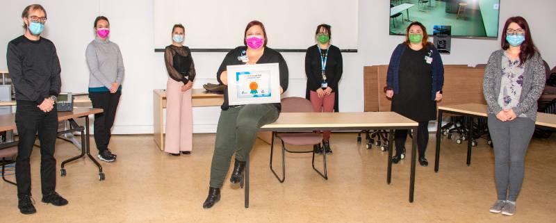 De gauche à droite : Dr Jérôme Paquet, chef de service médical; Sarah Couture-Labonté, infirmière; Marie-Claude Rochefort, chef de service accueil et rendez-vous à l’Hôpital de l’Enfant-Jésus (par intérim); Audrey Poirier, agente administrative au centre de rendez-vous en neurochirurgie; Gina Gervais, infirmière; Annie Leclerc, chef de service accueil et rendez-vous et chargée de projet au déploiement des centres de rendez-vous à l’Hôpital de l’Enfant-Jésus; Julie Hudon, agente administrative au centre de rendez-vous en neurochirurgie.