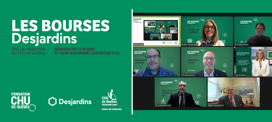 L’excellence de la relève en recherche a été soulignée de belle façon lors de la toute première remise virtuelle des Bourses de formation Desjardins pour la recherche et l’innovation de la Fondation du CHU de Québec, le 28 octobre.
