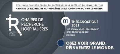 Accessibles, flexibles et adaptées aux réels besoins des chercheurs du CHU, ces chaires de recherche hospitalières permettront à la Fondation de créer de nouveaux partenariats d’importance, d’attirer des philanthropes de tous les horizons, tout en permettant aux chercheurs d’aller plus loin dans leurs travaux. Visant principalement des projets de recherche qui ont un lien étroit avec les services fournis directement aux patients, ces chaires favoriseront principalement le développement de la recherche clinique. Par la même occasion, la Fondation dévoilait la nature de la toute première chaire du genre à voir le jour, soit la Chaire de recherche hospitalière en théranostique. Les retombées de cette étude clinique sont fort prometteuses pour les personnes atteintes d’un cancer et traitées au CHU.