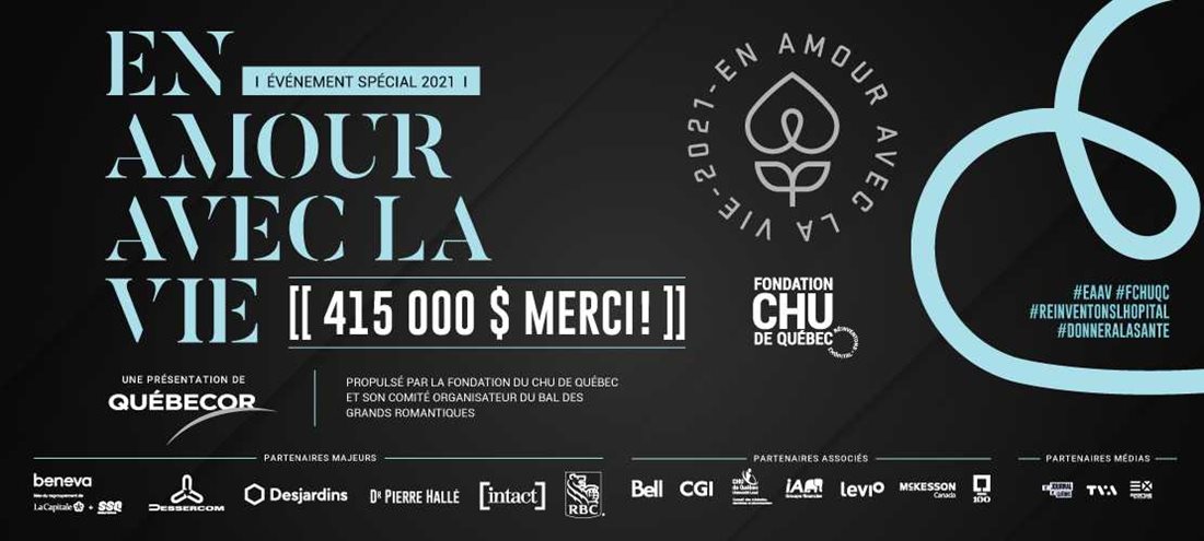 La Fondation tient à souligner la remarquable contribution du présentateur de l’événement, Québecor, des partenaires majeurs : Beneva, Dessercom, Desjardins, Dr Pierre Hallé, Intact, RBC; des partenaires associés : Bell, CGI, Conseil des médecins, dentistes et pharmaciens du CHU de Québec-Université Laval, iA groupe financier, Levio, McKesson Canada, SAQ; des partenaires médias : Expert'ease, Le Journal de Québec et TVA; ainsi que des donateurs. Tous ces précieux alliés ont assuré le succès de cet événement unique. La Fondation remercie également les distingués invités du talk-show, dont Mme Mélissa Gilbert, vice-présidente exécutive et leader Affaires financières chez Beneva, et M. François Dion, président et directeur général de Levio, les intervenants du CHU qui ont gentiment accepté d’y prendre part ainsi que les membres du comité organisateur du Bal des Grands romantiques pour leur appui.