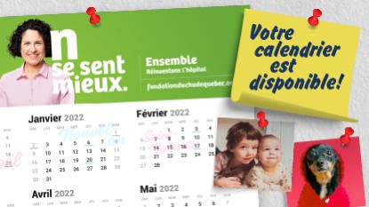 Le calendrier de votre fondation hospitalière est de retour! C’est LE calendrier à afficher sur les murs de votre bureau, de votre unité et/ou de votre salle de repos parce qu’il présente des informations pertinentes (les jours de paie...