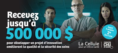 La Fondation du CHU de Québec, en collaboration avec le comité de La Cellule, vous offre la chance d’obtenir une subvention pouvant aller jusqu’à 500 000 $! Vous avez jusqu’au 23 juin 2023 pour soumettre votre projet. Suivez ce lien pour en savoir plus!