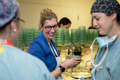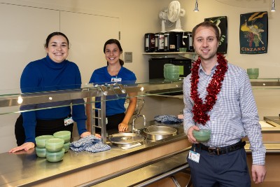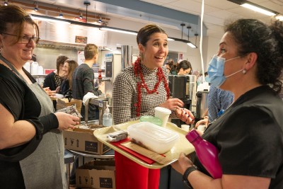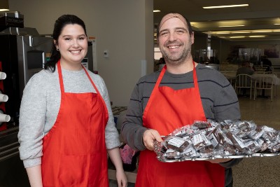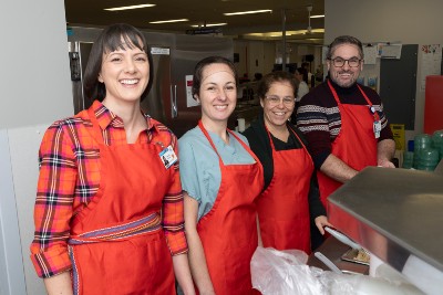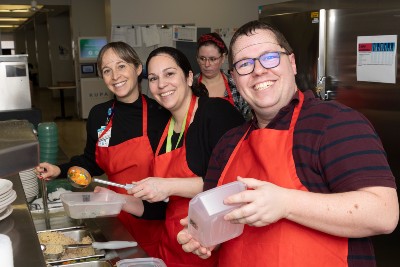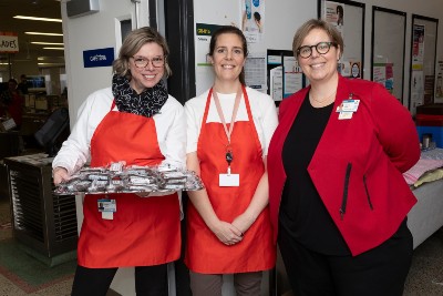 Ce grand évènement est aussi synonyme de beaucoup de travail pour les équipes des Services alimentaires, de la commande de denrées jusqu’au service! Ces équipes ont su relever avec brio et ingéniosité le défi de créer un menu spécial pour tous les intervenants du CHU!