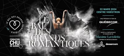 La 27e édition du Bal des grands romantiques, événement phare de la Fondation du CHU de Québec, aura lieu le vendredi 22 mars prochain au Centre Vidéotron. Présentée par Québecor et sous la présidence d’honneur de Maxime Laviolette, président et chef de la direction de Dessercom, cette soirée unique sera animée pour une deuxième année par Guylaine Tremblay.