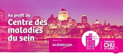 La 14e édition de Québec ville en rose est présentée par Québecor et se tient sous la présidence d’honneur de M. William Trudel.