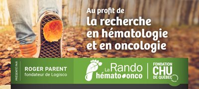 La 12e édition de la Rando hémato-onco, organisée par la Fondation du CHU de Québec, approche à grands pas! Le 28 septembre, vous aurez le plaisir de gravir la montagne du Centre de ski Le Relais, en compagnie de l’équipe de l’Unité de recherche clinique en hématologie et en oncologie du Centre intégré de cancérologie de l’Hôpital de l’Enfant-Jésus.