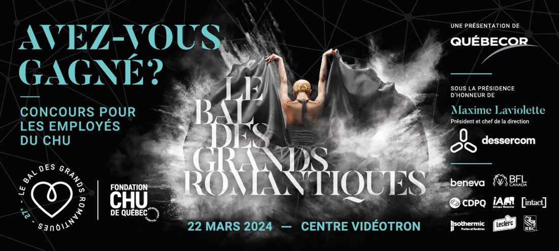 En collaboration avec ses partenaires, la Fondation du CHU de Québec offre à huit employés du CHU de Québec-Université Laval (CHU) l’occasion de participer à la 27e édition du Bal des grands romantiques.