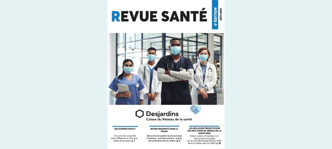 Ces deux projets sont présentés dans la quatrième édition de la Revue Santé présentée par la Caisse Desjardins du Réseau de la santé. Apprenez-en davantage sur la clinique l’Envolée (page 28) ainsi que sur la nouvelle Plateforme de coordination numérique d’ÉVAQ (page 47)!