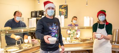Ce grand évènement est aussi synonyme de beaucoup de travail pour les équipes des services alimentaires, des commandes de denrées jusqu’au service, qui ont su relever avec brio et ingéniosité le défi de créer un menu spécial! Un immense merci aux préposés, aux cuisiniers, aux assistantes-chef, aux techniciennes en diététique, aux nutritionnistes, aux agentes administratives, aux gestionnaires ainsi qu’à tous les autres collaborateurs qui se sont dévoués pour rendre possible cet évènement, d’autant plus qu’il s’est déroulé cette année dans un contexte de grande pénurie de main-d’œuvre. Merci également aux gestionnaires de tous les secteurs qui se sont prêtés au jeu en enfilant tabliers et filets pour servir nos intervenants. Quel bonheur d’avoir pu renouer avec cette tradition si chère au CHU!