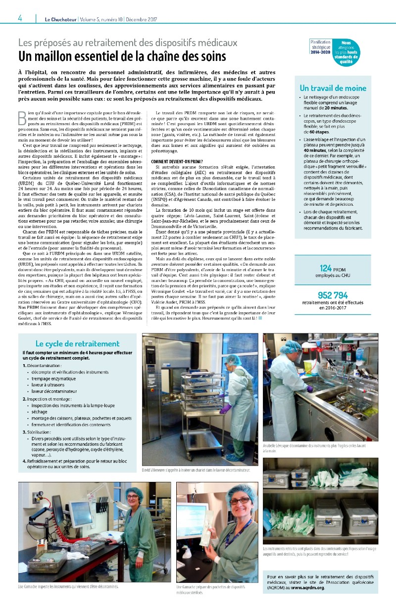 Pour en savoir plus sur les préposés au retraitement des dispositifs médicaux, consultez la page 4 du Chuchoteur de décembre 2017.