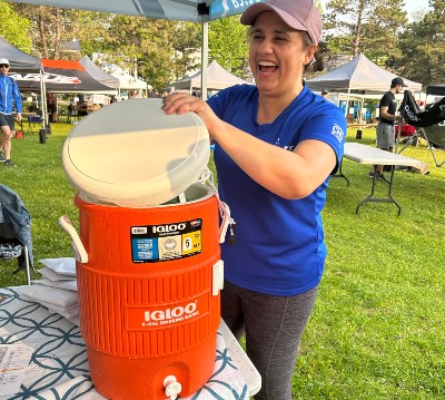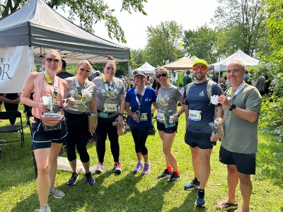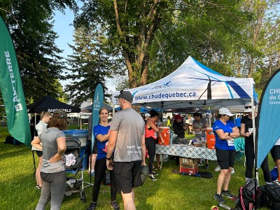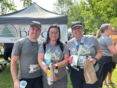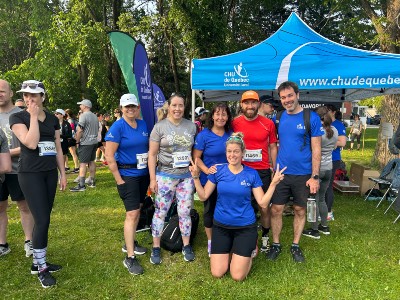 Les représentants du CHU affichaient leur plus beau sourire, et ce, tant au départ qu’au fil d’arrivée. Avant le départ... Après l’arrivée... Grâce aux collègues du Service de prévention et mieux-être au travail et d’un assistant à la préparation de la boisson énergisante, en la personne de notre dévoué PDG, les participants ont été dorlotés et bien gâtés! Bravo aux participants et merci aux organisateurs!