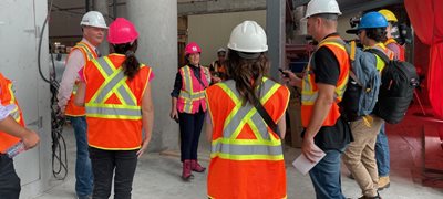 Jeudi le 7 septembre dernier, Madame Christine Mimeault, directrice générale adjointe du nouveau complexe hospitalier (NCH) au CHU de Québec-Université Laval, et Monsieur Robert Topping, directeur général – bureau de projet NCH à la Société québécoise des infrastructures, ont accueilli les membres des médias sur notre grand chantier.