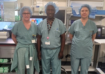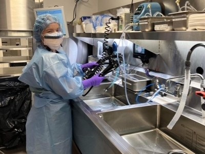 Préposé(e)s au retraitement des dispositifs médicaux à l'Hôpital Saint-François d'Assise.