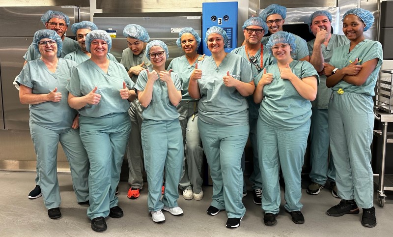Préposé(e)s au retraitement des dispositifs médicaux à l'Hôpital du Saint-Sacrement.