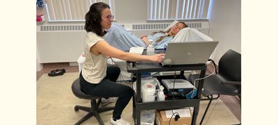 Photo principale : L’intérêt de Clémence et Gabrielle (jouant ici le rôle d’une patiente) pour le Centre de santé pelvienne réside dans l’aide apportée aux femmes pour favoriser un retour à l’autonomie dans les aspects fonctionnels du quotidien.