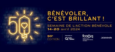 Cette année, la Semaine de l’action bénévole se tiendra du 14 au 20 avril sous le thème inspirant de « Bénévoler, c’est brillant! » afin de mettre en lumière la brillance des actions des bénévoles.